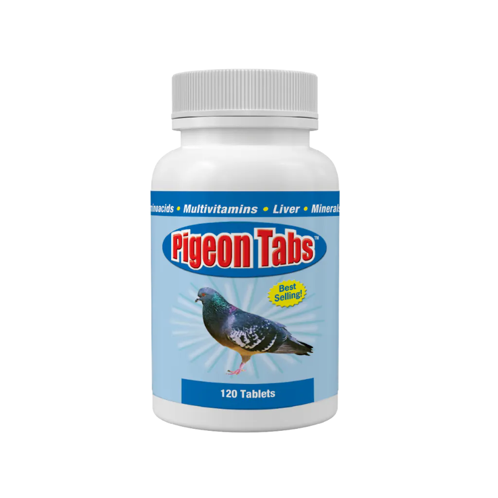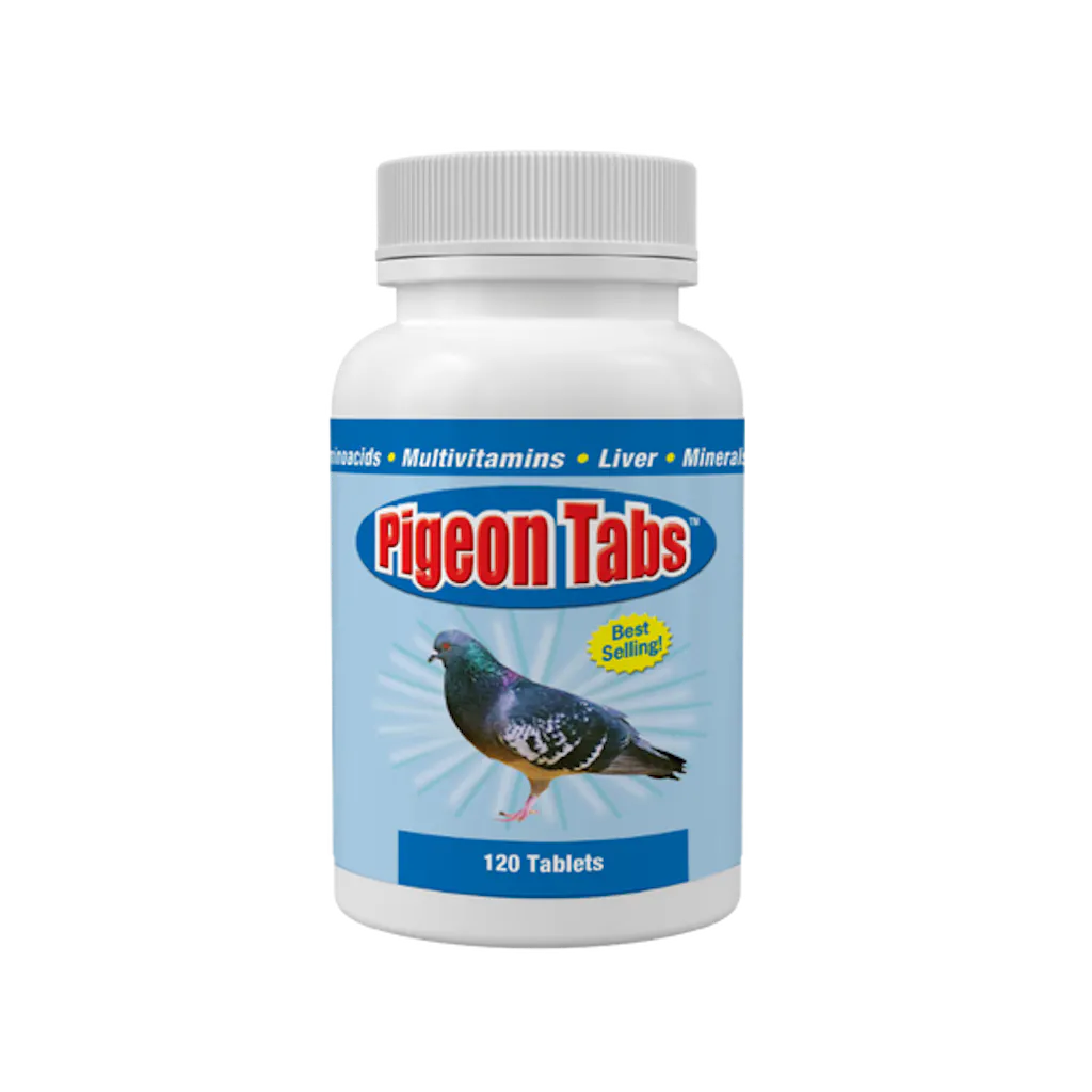 Developed specifically for racing, show, and breeding lofts, our Pigeon Tabs supplement delivers a balanced blend of essential vitamins, minerals, and amino acids to support overall health and conditioning in pigeons. Each tablet is enriched with Vitamins A, B-12, D, E, Calcium, Iron, and more, making it a convenient daily addition to your bird’s regular feed program.*